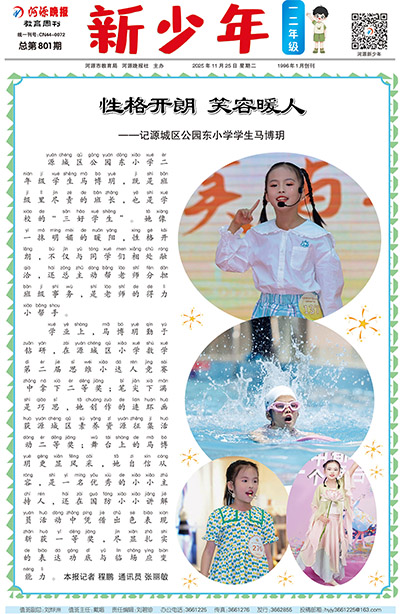 《新少年》周刊,面向我市各级教育主管部门、学校,宣传党的教育方针政策,传达省教育厅、市教育局指导教育工作的文件精神,报道我市教育改革经验和发展成就。